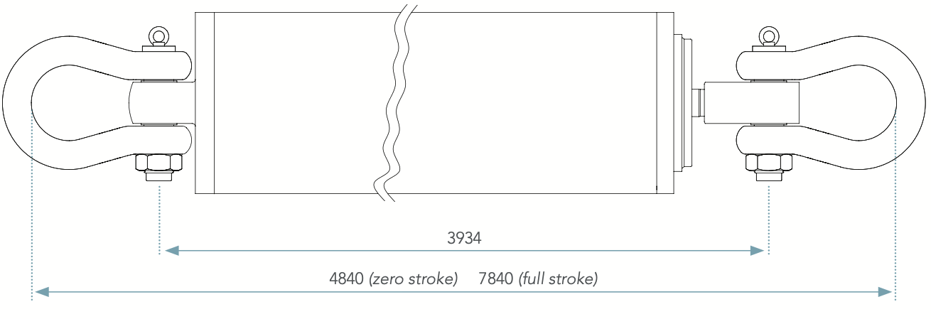 Passive heave compensator / shock absorber with SWL 150 and 3000 mm stroke range.